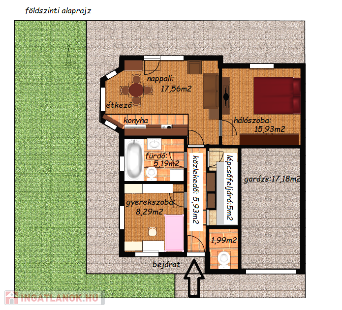 - utcáról megközelíthető, saját bejáraton keresztül