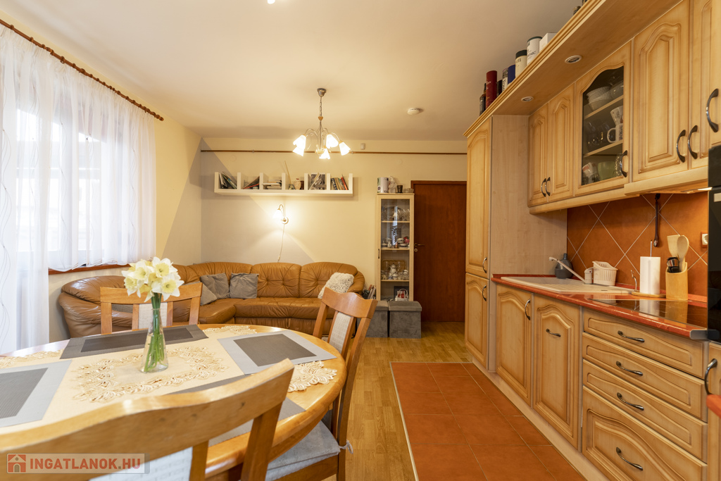 Jelenleg 70m2 a kialakított hasznos lakótér, mely nappali-étkező konyha, 2 hálószoba, fürdő szoba-wc, vendég wc, lépcsőfeljáró (ami kamraként funkcionál), és egy 15 nm-es fűtött garázsból áll.