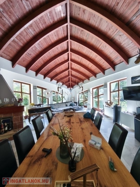 Eladó különleges, medencés családi ház Pécsen, a Mecsek keleti oldalán!Háromszintes, nettó 240 m²-es otthon, 2132 m²-es, parkosított telken. A kert egyik legnagyobb előnye az ellenáramoltatós, 1,7 méter mély medence, valamint a hangulatos pavilon, ami ideális helyszín a közös kerti programokhoz.-Tágas, világos nappali galériával és 5 méteres belmagassággal-Kandalló, ami otthonos, meghitt hangulatot teremt-3 külön nyíló hálószoba, 1 félszoba-A tetőtérben 2 szoba található, ebből az egyik már kialakított, a másik pedig beépíthető akár plusz hálóként vagy dolgozóként is használható-Egy nagyobb alagsori garázs autó számára, valamint egy kisebb, ami motor, kerékpár vagy tárolás céljára ideális-Udvari beállási lehetőség több autónak-Buszmegálló kb. 400 méterre, így a tömegközlekedés is könnyen elérhetőEz az ingatlan azoknak szól, akik nyugodt, zöld környezetben szeretnének élni, de nem szeretnének lemondani a város közelségéről és a kényelmes, nagyvonalú élettérről.Érdeklődés vagy megtekintés esetén hívjon bizalommal!