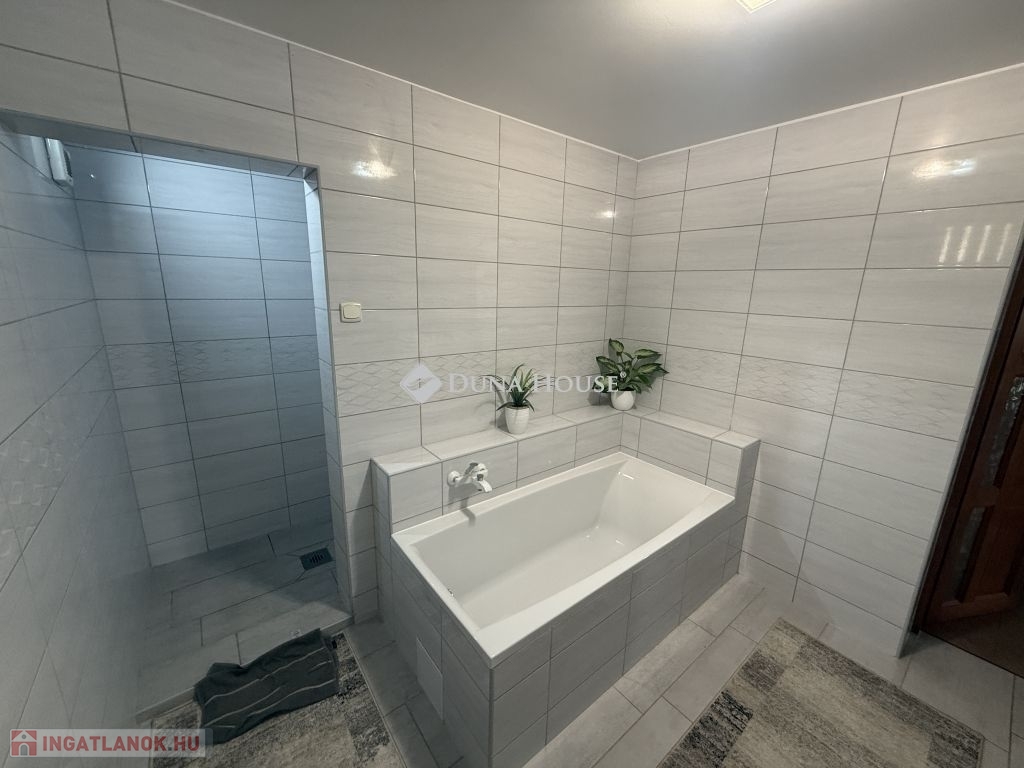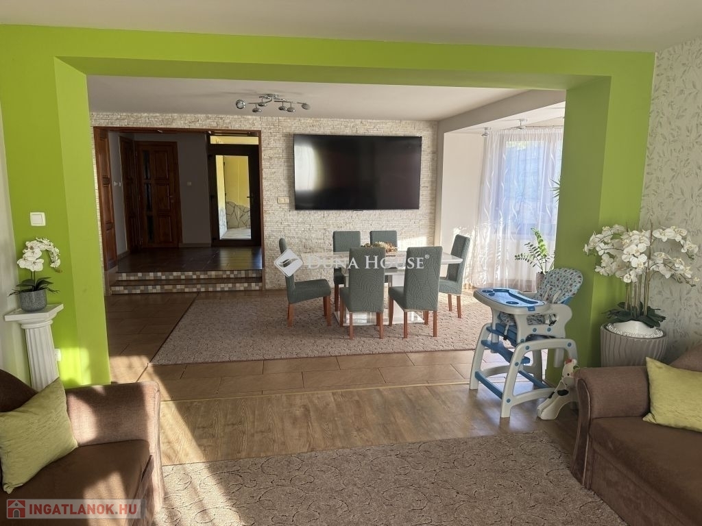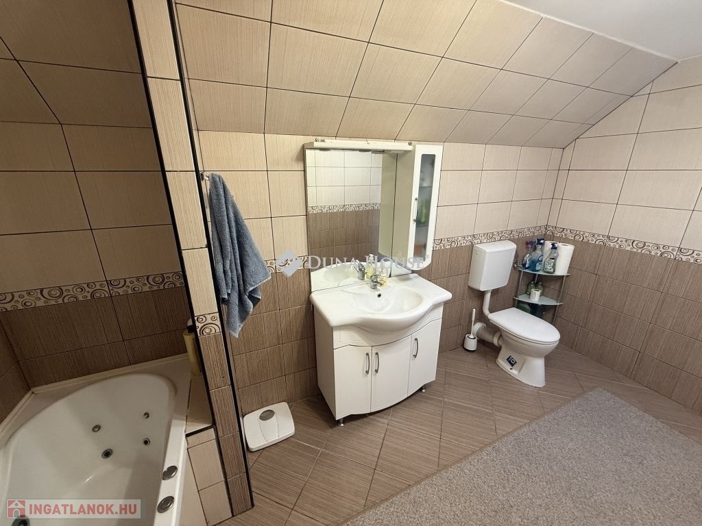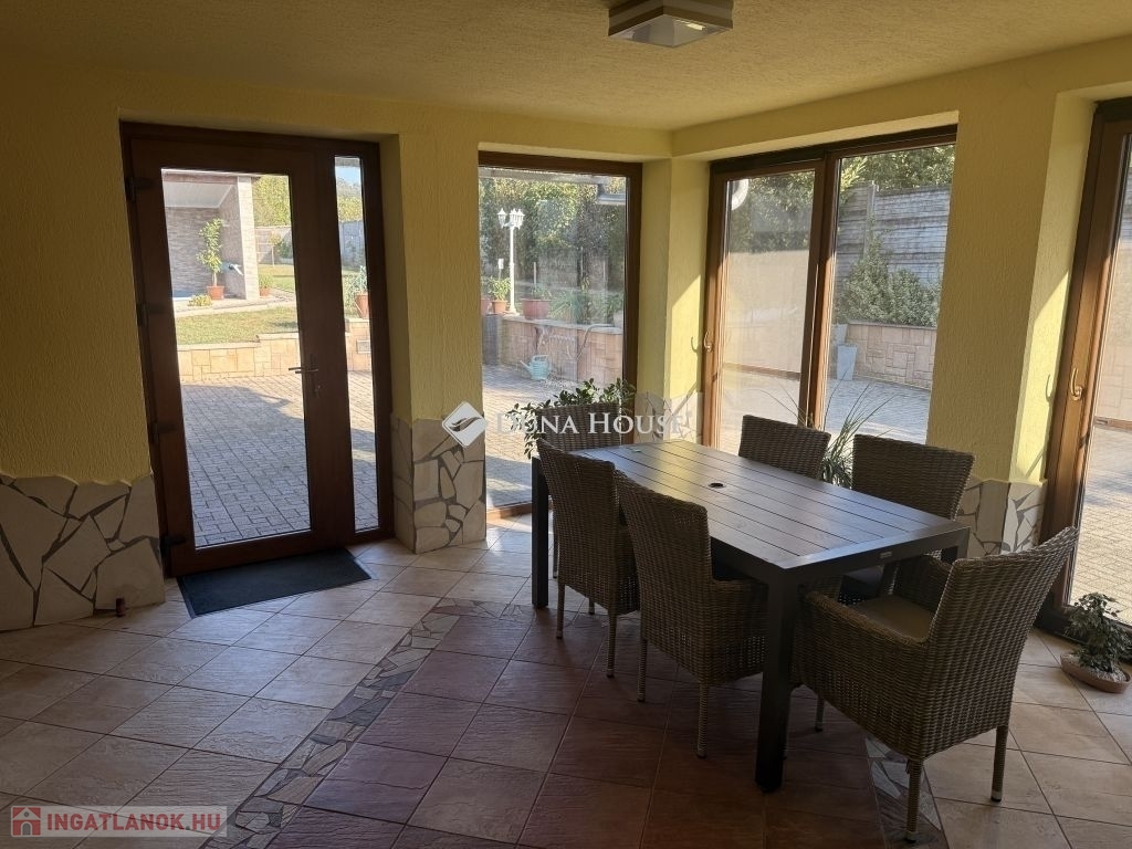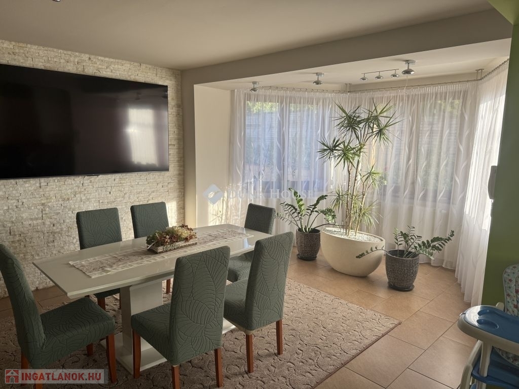 Eladásra kínálunk egy 2011-ben épült, bruttó 220 / nettó 195 négyzetméteres, szigetelt családi házat Pécs-Somogy városrészében. Ez a téglaépítésű ingatlan modern fűtési rendszerekkel, köztük gáz cirkóval van ellátva, így biztosítja a minden évszakban való kényelmes életvitelt.A ház energiatakarékos megoldásai közé tartozik a napelem rendszer, valamint a kényelmes és gazdaságos vízhasználatot egy BWT vízlágyító és az öntözéshez használt ásott kút teszi lehetővé.A földszinten élvezhető a padlófűtés nyújtotta kényelem, mely villany és gáz kazánnal egyaránt üzemeltethető, míg az emeleten radiátoros fűtés gondoskodik a melegről.A földszinten egy tágas amerikai konyhás nappali várja az új tulajdonosokat, mellette egy hálószoba, gardróbszoba, fürdőszoba, háztartási helyiség, spájz és egy WC kapott helyet. A ház kialakítása olyan, hogy az emeleti rész külön bejárattal is rendelkezik, ahol egy másik amerikai konyhás nappali, egy plusz fürdőszoba és egy különálló szoba található. Ez a kialakítás lehetővé teszi, hogy akár két generáció vagy két család is kényelmesen éljen együtt, mégis külön.A külső teret egy 40 négyzetméteres fedett terasz, valamint egy további kültéri terasz színesíti, ahol egy fűthető medence és egy infra szauna is helyet kapottHa kényelmes, modern és energiatakarékos otthont keres Pécsen, akkor ez a családi ház tökéletes választás lehet. Kérdéseivel bátran forduljon hozzánk, készséggel állunk rendelkezésre!