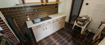 Alsó szint (42 m²): szoba, konyha, fürdőszoba, spájz, előszoba, pince
