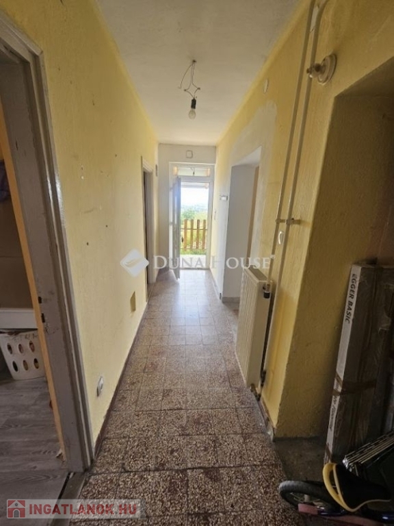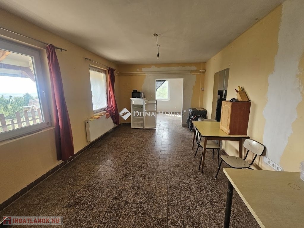 ELADÓ PANORÁMÁS EGYSZINTES HÁZ PÉCSVÁRODAN !Eladó egy panorámás 1142nm-es telken található, egy szintes , cca. 110nm-es családi ház Pécsváradon a Temető utcában. Az ingatlan felújítása már megkezdődött:- újszerű cserép fedés,- új villany vezetékek, H-tarifás mérő kiépítése,- 2db nagy teljesítményű klíma beépítése, ill. 2db előkészítése,- új műanyag nyílászárók, - Új radiátorok, A ház jelenleg konyha-étkező, nappali, 2db szoba, fürdő, wc, előtér elosztású, de könnyedén kialakítható még egy hálószoba.Az ingatlan 2 bejárattal rendelkezik, az egyikből kialakítható egy kazánház jellegű helyiség mely így megközelíthető lesz kintről és a nappaliból egyaránt.Fűtését tekintve vegyestüzelésű kazánnal vagy klímákkal megoldott.A ház tetőtere beépíthető, így további szobák kialakítása is lehetséges. Az udvarban található egy melléképület, mely 2 szobából áll, a villany vezetékek cseréje már itt is megtörtént. Tehermentes és szinte azonnal birtokba vehető.További információkért keressenek.
