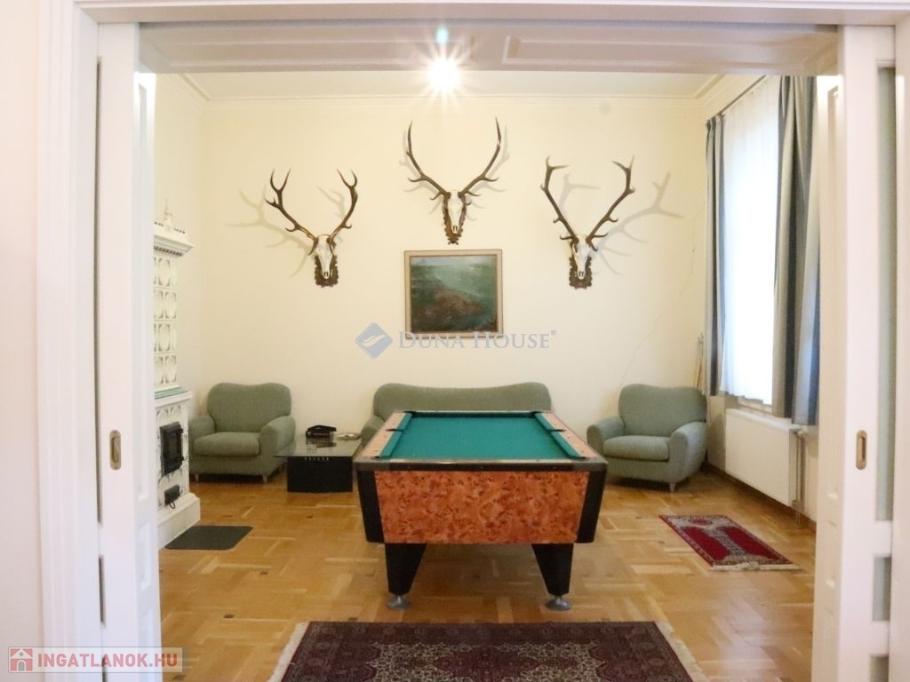 Eladóvá vált Pécsváradtól és a Dombay tótól 1 km-re lévő, 1902-ben épített Kúria! Ideális ingatlan befektetés, intim, elszeparált családi birtoknak, vagy akár üzleti célra, vendégháznak, vadászháznak, rendezvényháznak! Az épület együttes egy halastó szomszédságában, közel két hektár, 19600m2, parkosított, körbekerített területen fekszik rálátással a Zengőre, ahová egy Székely kapun keresztül érkezünk meg. A főépület br. 306 m2, Kelet-Nyugati tájolású, melyhez egy 17 és egy 26 m2-es fedett terasz kapcsolódik.A földszint tágas terekből áll össze, mely magas, nagyméretű ablakokkal határolt, belmagassága 3,65m, körbenapozott, így kellemes, világos, szellős miliőt biztosít reggeltől, estig. A nappali ideális méretű, 41m2, ahonnét a biliárd szoba, valamint a keleti terasz közelíthető meg, mely nyáron a délutáni órákban kellemes, hűs időtöltésre ad lehetőséget, kilátással az ősfás parkra. Ezen a szinten, egyebek mellett, helyet kapott még kettő hálószoba, melyekhez saját fürdő tartozik és egy 24 m2-es étkező, amihez a nyugati oldali terasz és asztalos által, egyedileg, keményfából gyártott konyhabútorral felszerelt, gépesített konyha kapcsolódik. Ennek az épületnek egyebek mellett, egyik ékessége a Zsolnay gyár által egyedileg tervezett és készített, kézzel festett majolika cserépkályha, ami biliárd helységben található.Az épület alatt egy boltíves, téglával kirakott 37m2-es boros pince, széles, 18m2 közlekedő, egy 17m2 és egy 26 m2-es, kibetonozott alagsori helyiség található, ami további lehetőségeket rejt magában, akár wellness vagy konditerem kialakítható. További bővítésre a tetőtér irányába van lehetőség, ahol több apartman vagy háló helységek is kialakíthatóak.A területen továbbá helyet kapott egy bruttó 311m2-es vendégház, ami 23m2 déli tájolású fedett teraszról közelíthető meg. Az épület közepén 35m2 nappali található, amit egy nagyon szép Zsolnai cserépkályha díszít. Innen jobbra és balra egy-egy hálószoba nyílik, saját fürdőszobával. Az épület nyugati oldalán, a terület bejárata felől, 31m2 kétállásos garázs, tárolóval, a nyugati oldalon pedig fedett, 37m2 kiülő, nyári konyhával került kialakításra, ami szükség esetén beépíthető és így további apartman nyerhető belőle.A két épület felújítása 2002-2007 között történt, mely során, mid műszakilag, mind esztétikailag teljesen megújultak. -A külső nyílászárók keményfából, betörésbiztos hőszigetelt üvegezéssel, a belső ajtók is egyedileg, tömör fából készültek. -A külső és belső hideg burkolások 1. osztályú, Süttői mészkőből készültek, a parketta pedig minőségi tölgyfából lett lerakva.-A fűtés, épületenként egy-egy gázkazánnal megoldott, melyek 5m3 földbe süllyesztett gáztartályról vannak táplálva.Jöjjön el , nézze meg, érdemes!!! További információkért hívjon a megadott számon.