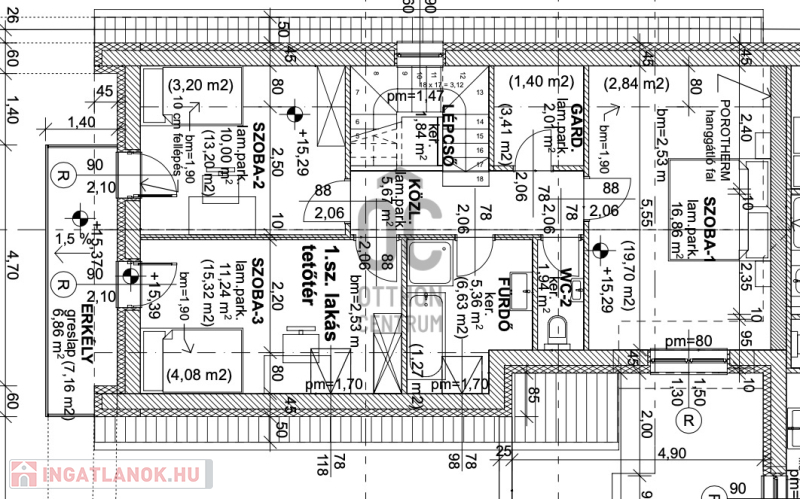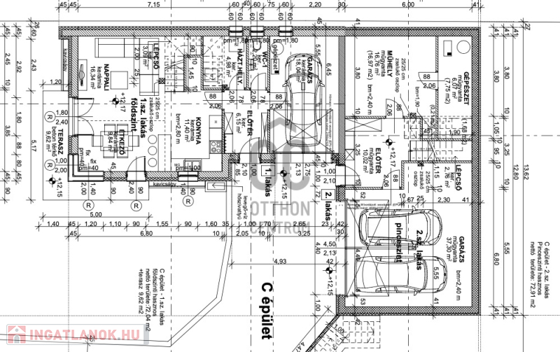 Különlegesség: a C épület egyik lakása háromszintes, kétállásos garázzsal és extra tárolási lehetőséggel
