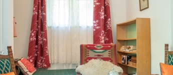 Belül hagyományos burkolatok borítják, a fűtést jelenleg gyönyörű cserépkályhák biztosítják.