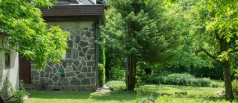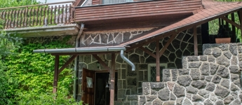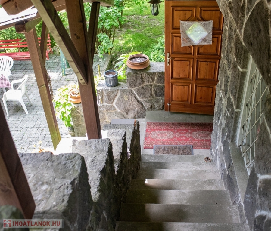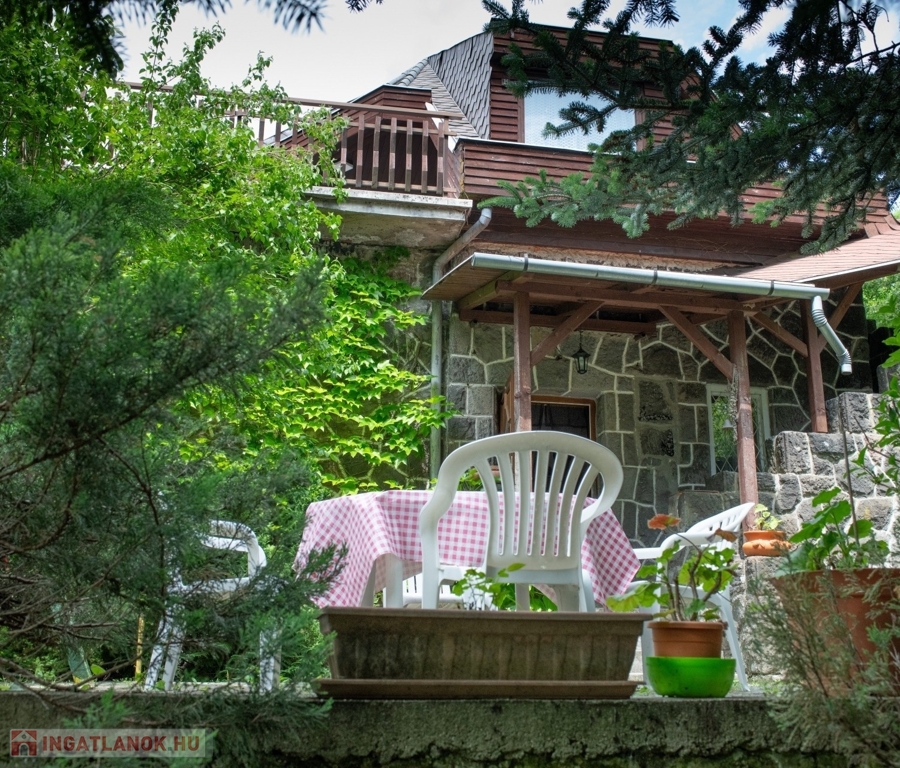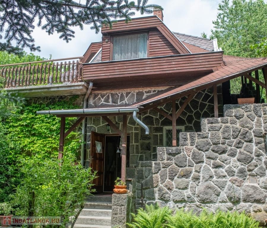Dobogókő csendes kis mellékutcájában, az Arany János utcában, árnyas fák között húzódik a kétszintes, kívülről terméskő burkolattal védett családi ház, a tulajdoni lapon „hétvégi ház” megjelöléssel.