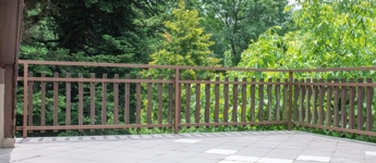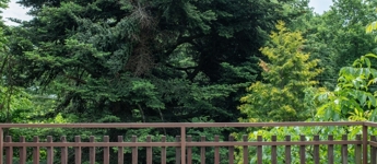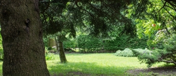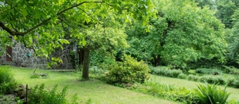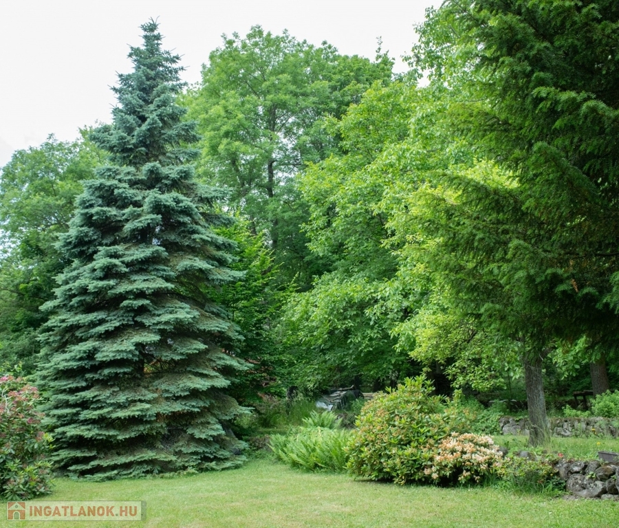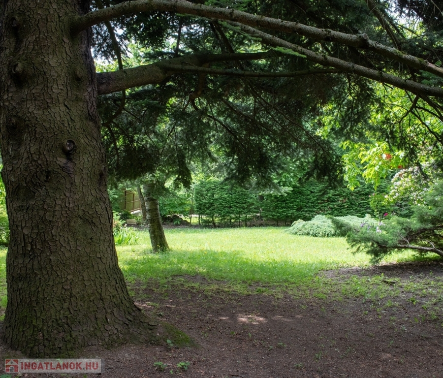 A kert 1667 nm nagyságú, gondozott, számtalan dísznövény, és fenyő található rajta. A telek arányos téglalap alakú, az épület a telek középső részén helyezkedik el.