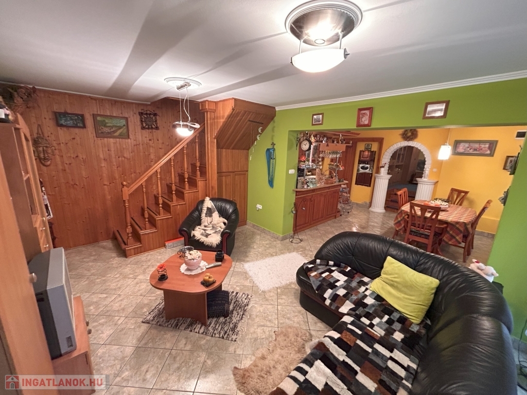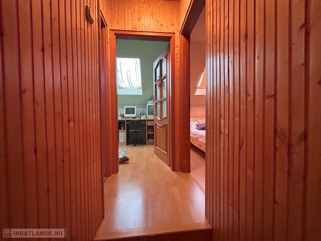 A birtok egy 2742 nm-es telekre épült, amely saját fenyvessel rendelkezik, így garantálja a természet közelségét és a nyugalmat. Az összközműves családi ház alapterülete 95 m2, a felső szint további 33 m2 életteret biztosít a lakóknak. Fűtését fatüzelésű és gázcirkó kazán biztosítja. Az ingatlan kiváló állapotban van, tökéletes tetőszerkezettel, ami magában foglal a két szinten összesen 6 szobát, 2 fürdőszobát- Wc vel, valamint tágas amerikai konyhás nappalit étkezővel. Tágas, fényes terek jellemzik az ingatlant mindkét szinten.
