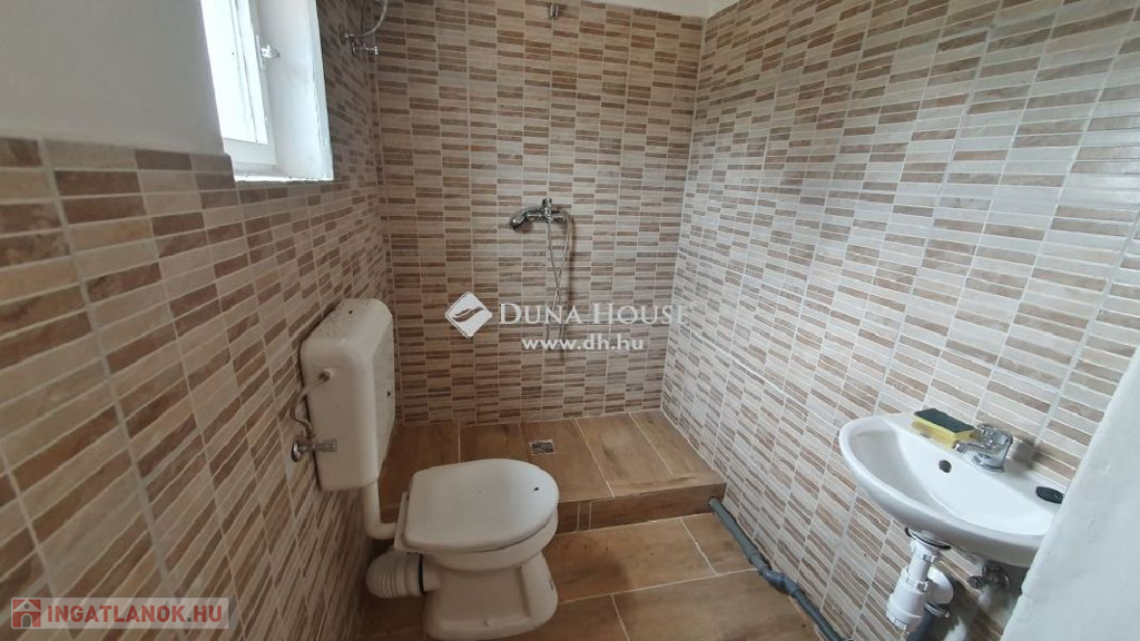 A felső szinten a szobába új laminált parkettát raktak le, valamint egy teljesen új burkolatú zuhanyzós, WC-s fürdőszobát alakítottak ki.