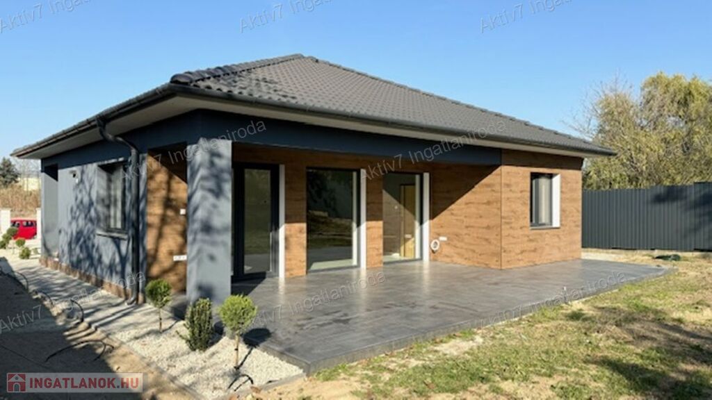 Modern, 108 m2 ( a terasz felével számolva 122 m2) amerikai konyha-nappali, 3 hálószobás otthon nagy terasszal (a helyiségek kialakítása a fotóknál található alaprajz szerint), 820 m2 területű telekkel, ahol van tér pihenni, picit kertészkedni, medence vagy reprezentatív kerti környezet kialakítására, tökéletes helyszín családi pillanatokhoz, vendég fogadáshoz egyaránt.