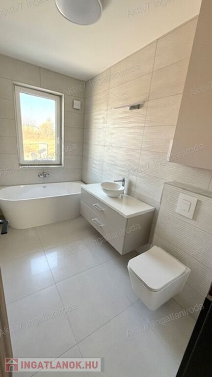 Impozáns méretű nyílászárók, fényárban úszó életterek, alumínium redőnyök vinil padlóburkolat, a vizes helyiségekben hidegburkolat.