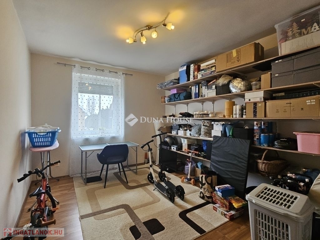 Eladásra kínálom Máriagyűd egyik kedvelt, rendezett utcájában ezt a gondosan karbantartott, 1996-ban épült családi házat, amelynek jelenlegi tulajdonosai az építéstől kezdve ugyanazok, így az ingatlan teljes előélete ismert.A ház Porotherm 38-as téglából épült, teljes körű homlokzati, lábazati és födémszigeteléssel rendelkezik. A beton födém lehetőséget biztosít a tetőtér beépítésére, így igény esetén a lakótér tovább bővíthető.Az ingatlan energiatakarékos megoldásokkal felszerelt: egy 5 kW-os napelemes rendszer működik rajta, amely még 8 évig szaldó elszámolásban marad, és akár 7,5 kW-ig bővíthető. A rendszer jelenleg fedezi a teljes villamosenergia-felhasználást.A fűtésről gázkazán és vegyes tüzelésű kazán gondoskodik, padlófűtéssel kiegészítve. A kellemes hőmérsékletet egész évben két inverteres klíma és egy hűtő-fűtő klíma biztosítja. A fűtési rendszer igény szerint hőszivattyúval is tovább fejleszthető.A 33 m²-es melléképületben egy 23 m²-es, szerelőaknás garázs, valamint egy 10 m²-es tároló és kazánház kapott helyet. A melléképület mögött betonozott udvarrész található, amely alkalmas medence kialakítására is.Az ingatlan korszerű, távfelügyeletes riasztórendszerrel felszerelt, amely a nyílászárókra és a garázsra is kiterjed, így a biztonság is megoldott.A ház ideális választás mindazok számára, akik egy jól karbantartott, energiatakarékos, bővíthető otthont keresnek nyugodt környezetben.Megtekintés és további információ miatt várom hívását bizalommal.