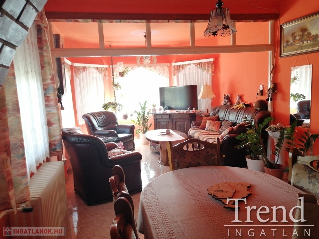 Solton az iskola sz omszédságában eladó, 706nm-es körbe kerített telken, 120nm-es 4 szoba+nappalis vegyes falazatú családi ház. A telek körbe kerített, parkosított. A ház az évek során felújításra került. Nagy előszobájából közelíthető meg a tágas, nagy nappali, innen a két nagyobb szoba. Konyhája sem kicsi, tartozik hozzá még egy kamra is. Fürdőszobában dupla mosdókagyló került beépítésre, zuhanykabin és a wc. Másik két szoba egybe nyílik. Tágas nagy teraszon még egy plusz wc, kézmosóval is kialakításra került.