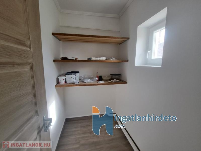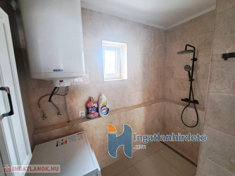 Elhelyezkedése: Belterület Tájolása: Dél-keleti tájolású Állapota: Használt - felújított Komfort besorolása: összkomfortos Építési éve: 1978 Alapterülete: 108 m2 Telekterülete: 4 304 m2 Szobák száma: 3szoba Felújított: Felújított Felújítás éve: 2024 Felújítás során elvégzett munkák: Festés, Villanyrendszer csere, Vízrendszer csere, Fűtésrendszer csere, Csempe csere, Járólap csere, Parketta csere, Fűrdőszobai szaniterek cseréje, Belső átépítés Közművek: Gáz, Víz, Villany Gázellátás: Vezetékes Vízellátás: Vezetékes víz Melegvíz-ellátás: Gázkazán, Villanybojler Áramellátás: 230V Fűtés módja: Gáz Fűtés típusa: Cirkó Homlokzat állapot: Jó Építési mód: Tégla Tető formája: Magas Tető anyaga: Cserép Parkolási lehetőség: Garázsban Kilátás: Utcafronti kilátás Jellemzői: Légkondicionáló, Étkező, Amerikai konyha, Kert, Kerítés, Kapunyitó automatika Energetikai besorolás: G Egyéb jellemzők: Melléképület, Pince Tv, Internet: Kábeltévé, Internet Közelben: Bolt Terhelések: Tehermentes ingatlan Eladásra vonatkozó információk: Azonnal beköltözhető