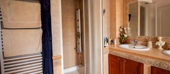 A burkolatok mindenhol minőségi járólapok és laminált parketták.