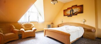 Az ingatlan alsó szintjén egy tágas, világos nappali kapott helyet, mely közvetlen kapcsolatban áll az étkezővel. A különálló, praktikusan kialakított konyha mellett egy hálószoba, fürdőszoba, külön WC, kamra, háztartási helyiség és előszoba-lépcsőházzal is található. A nappaliból egy barátságos, fedett teraszra jutunk, ami kiváló helyszíne lehet családi vagy baráti összejöveteleknek. Az emelet három nagy méretű hálószobával, egy fürdőszobával, külön mellékhelyiséggel és közlekedővel szolgálja a kényelmet – kettő szobából is megközelíthető a hangulatos erkély. Az egyik hálószoba, akár ketté is osztható, így plusz egy hálószobát kaphatunk.