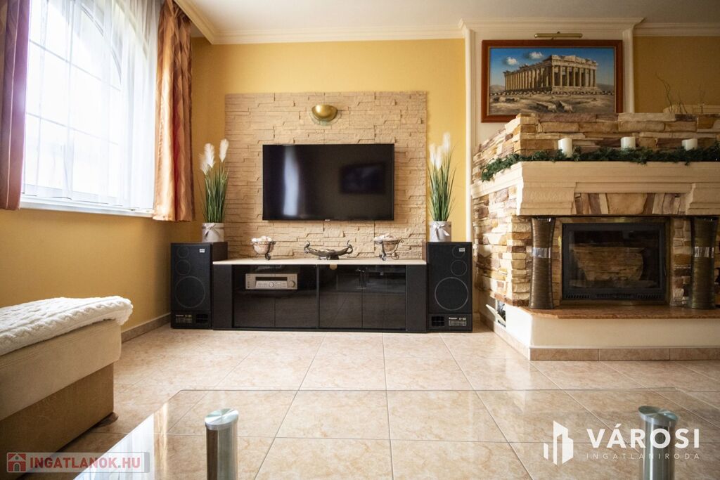 Az egész ház padlófűtéssel rendelkezik (gázkazán), amelyet az emeleten egy 3.5 kW-os Gree klíma, a földszinten egy hangulatos, szép, fatüzelésű kandalló egészít ki.