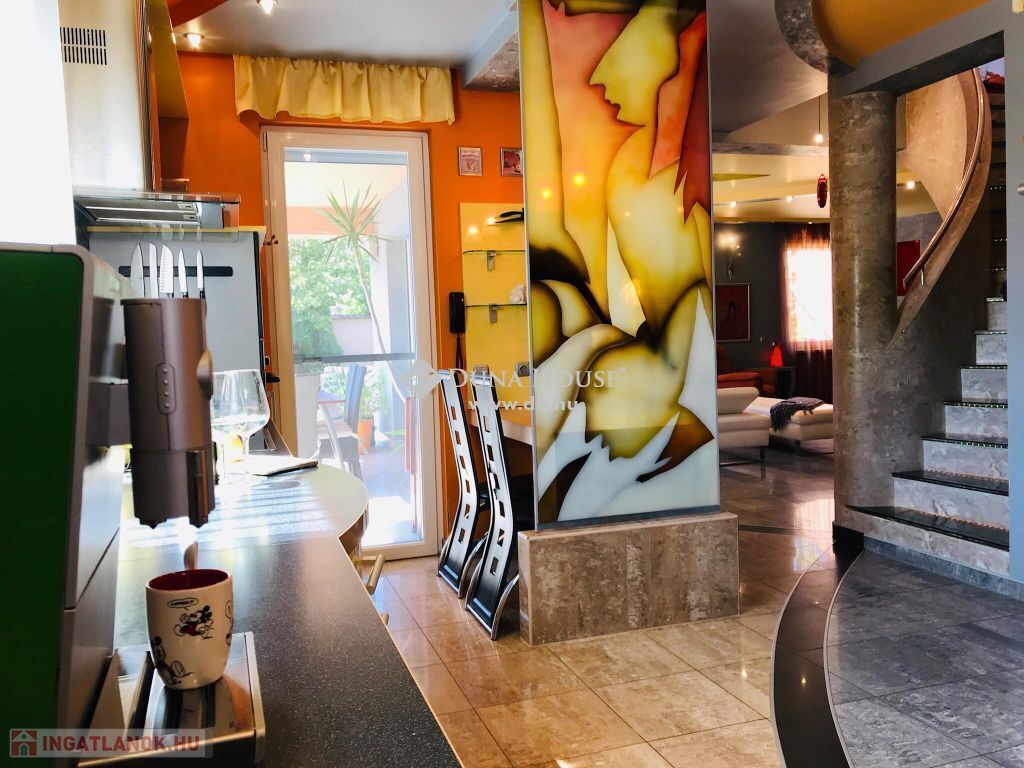MEDITERRÁN HANGULAT KERTVÁROSI ÖVEZETBEN!Újszeged csendes, családi házas részén, a Marostő városrészben 201,31 m2-es nappali + 4 szobás, 3 fürdős, gardróbos, + garázs ikerház 393 m2-es telken eladó. Az ingatlan 2007-ben épült, Belsőépítész tervei alapján kivitelezett, kétszintes , klimatizált, riasztóval felszerelt.Össz terület: 173,83 m2 (1/2-1/2 terasz és erkély) + 27,48 m2 garázs = 235,32 m2.Az ingatlanba lépve láthatjuk, hogy a helyiségek az élettereket figyelembe véve a mai trendnek megfelelően praktikusan lettek kialakítva.A kétszintes épületben a földszint dominál.Az alsó szinten belépéskor kellemes belső tér fogad, az előszobából nyílnak a helyiségek. Balra a konyha-étkező, jobbra gardrób, fürdő, mellékhelyiség, mely kézmosóval felszerelt. Az előszobából tovább haladva a rendkívül hangulatos, jó fényviszonyokkal rendelkező tágas nappali tárul elénk, melynek dísze a kandalló. A nappali és a konyha-étkező egy teret alkotnak, mindössze egy oszlop választja el őket. A konyha gépesített, Bosch gépekkel felszerelt. A nappaliból kiléphetünk a fedett - és nyitott teraszra.Az emeletre kényelmes, elegáns lépcsőn jutunk fel. Ezen a szinten két lakószárny került kialakításra, melynek központi része a társalgó. Előtérrel szemben 10,44 m2-es terasz nyílik, jobbra egy gardrób szoba ad lehetőséget a tárolásra, tovább haladva a szülői háló, a fürdőszoba, az innen nyíló külön légtérben kialakított wc és egy gardrób érhető el. A közlekedőből nyílik a kissé elszeparált 2 külön bejáratú hálószoba, a fürdő és a kézmosóval felszerelt mellékhelyiség.Az egyik fürdőszoba tágas, elegáns szaniterekkel és burkolatokkal felszerelt, sarokkádas, melyben még egy wc is található. A másik fürdőbe zuhanykabin került beépítésre.A szobák laminált parkettával és szőnyegpadlóval, a többi helyiség járólappal burkolt.Falai festettek, fűtése egyedi gáz cirkó padlófűtés, a szobákban radiátor hőleadókkal, a nappaliban kandalló teremt meghitt pillanatokat az itt lakóknak.A kellemes hőérzetről 3 db klíma gondoskodik.A kiváló minőségű hő-és hangszigetelt nyílászárók redőnnyel - és szúnyoghálóval felszereltek.A biztonságról riasztórendszer gondoskodik.A kert szépen rendben tartott, parkosított, kerti grillterasz üzemel.A fedett- és nyitott terasz és az ingatlan mögötti parkosított rész a pihenést szolgálja. Kiváló helyszíne lehet családi - és baráti találkozóknak , ahol nagyobb társaság is élvezheti a gyönyörű kert és a társasági összejövetel hangulatát.,Az ingatlanhoz elektromos kapuval felszerelt 27,48 m2-es garázs is tartozik, mely az utcáról nyílik.A ház helyiségeinek színvilága, burkolatai a mediterrán stílust képviselik, így együttesen egy nagyon kellemes, otthonos megjelenést sugároznak. A terek felosztása jól átgondolt, ennek köszönhetően nagyon kellemes atmoszférájú az ingatlan.A Belváros 10 percre elérhető. Az utcán ingyenesen lehet parkolni. Különösen jó infrastruktúrával rendelkezik, a környéken sok kisebb-nagyobb üzlet működik. Élelmiszer üzletek, zöldséges, gyógyszertár és egyéb szolgáltató egységek is megtalálhatóak a közvetlen környezetében.Remek kikapcsolódási lehetőségeket nyújt a közelben lévő park, játszótér, kézilabda - és focilabda pálya, a Maros Fitt Park edzőterem és wellness.A családi ház kiváló otthona lehet olyan családoknak, akik szeretik a csendet, az igényes, ötletes megoldásokat és Újszeged egyik kedvelt részén szeretnének élni.Kérdése van? Forduljon hozzám, keressen a hét bármely napján bizalommal!