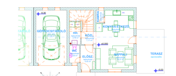 A többi már kész: 30-as téglafalak, 15 cm-es grafit szigeteléssel, gázfűtés takarékos kondenzációs gázkazánnal, garázs, a belső kerítés kész, a külső most van építés alatt stb.