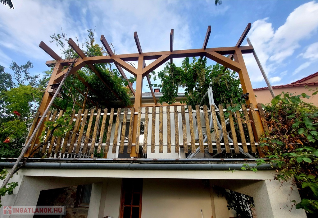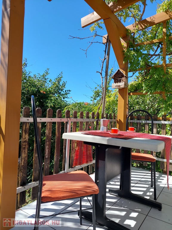 30 m²-es, déli fekvésű terasz szőlőlugassal – tökéletes reggeli kávéhoz vagy esti borozáshoz