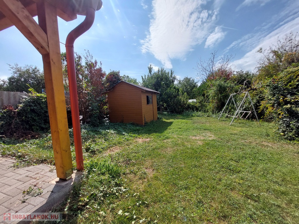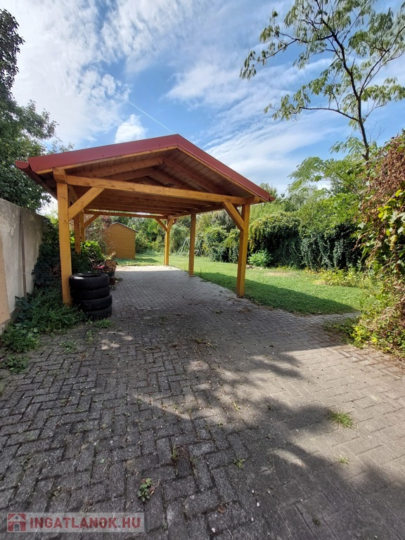 Udvar: zárt, privát kert, fedett autóbeálló, szerszámos épület
