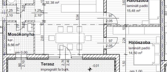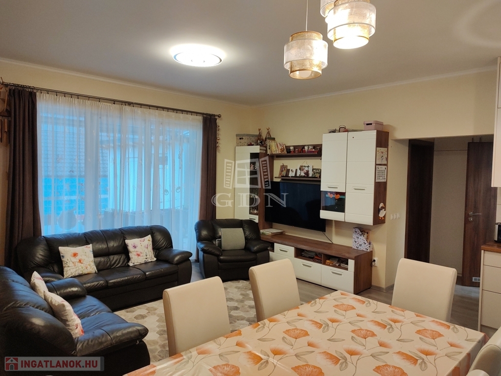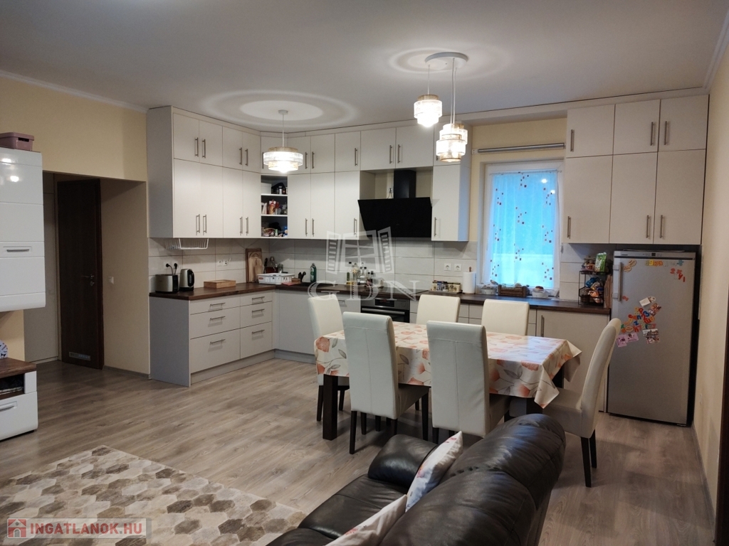 Az épület kiváló elosztású, tágas, napfényes, teraszkapcsolatos, amerikai konyhás nappali, két hálószoba, előszoba, toalett került kialakításra.