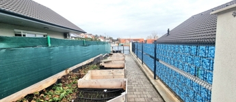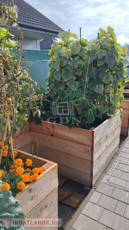 Az ingatlanhoz elszeparált, saját 216 nm-es telekrész tartozik, most épülő fedett kocsibeállóval, automata kapuval.