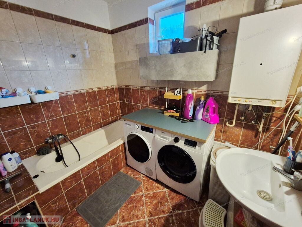 - A lakásban egy nagyméretű, káddal felszerelt fürdőszoba (6,22m2) található, ahol a mosó és szárítógép is kényelmesen elfér, külön mellékhelyiség is rendelkezésre áll, ami jelentősen növeli a komfortérzetet.