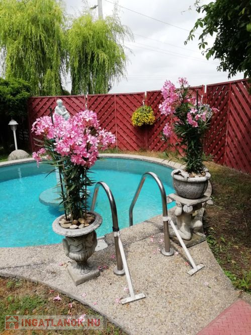 Szigetszentmiklóson Oázis és Dujmó lakópark közelében1984-ben épült alápincézett 3 szintes 180 nm lakóterű 5 szobás alápincézett ikerház 383 nm parkosított telekkel,épített gépesített kör alakú úszómedencével eladó.
