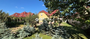 Az ingatlan egy szépen gondozott, 819 m2-es parkosított telken fekszik. Kiváló tájolású a ház, reggeltől kora estig issza a napfényt. A telek nagyobb részét dísznövények és örökzöldek tarkítják, de hátul megbújik egy konyhakert és egy tároló faház is.