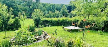 A 170 m2-es ingatlant 1678 m2-es parkosított kert veszi körbe, melyben virágok, termő gyümölcsfák, veteményes, fúrt kút és 4 autóbeálló található.