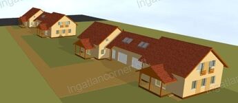 Mindegyik ingatlan 124,5 m2-es (+ fedett terasz 10 m2), nappali + 4 hálós, 2db fürdőszobás, gardrób helyiség, garázs (+21 m2)