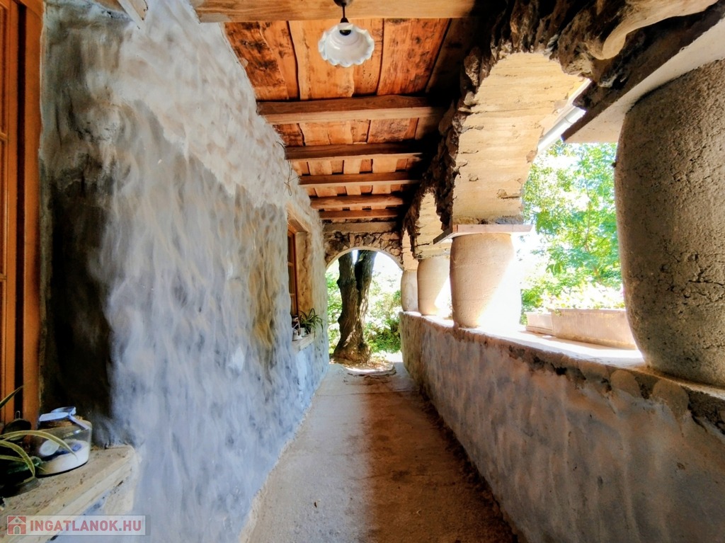 3600 m2-es telekterület tartozik hozzá, melynek 2/3-a bokros-fás terület, ebből mindössze 500 m2 sík terület, közvetlenül a ház mellett, ahová parkolni lehet.