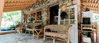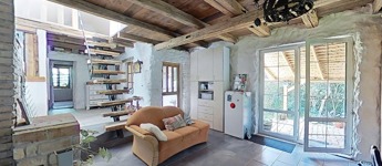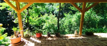 Valamint csatlakozik hozzá még egy 60 m2-es fa terasz a ház és patak közötti szurdok közepén, melyre akár fürdődézsa vagy jurta is tervezhető, vagy egy pergolás terasz.