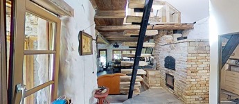 A tetőtér további egy 32,5 m2-es hálószobát foglal magába, mely egy légtér jelenleg, de igény szerint ketté osztható. A szinteket egyedi kézműves rönkfa lépcső köti össze.