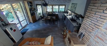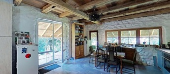 Valamint csatlakozik hozzá még egy 60 m2-es fa terasz a ház és patak közötti szurdok közepén, melyre akár fürdődézsa vagy jurta is tervezhető, vagy egy pergolás terasz.