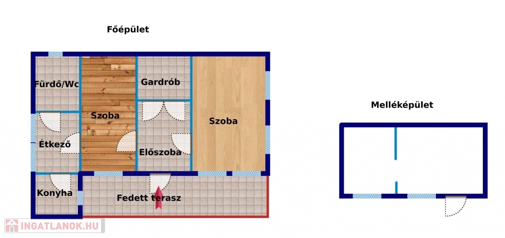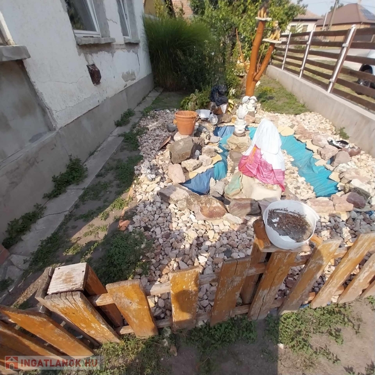 A telek körbe van kerítve. A főépület a fedett teraszon (23 m2) át közelíthető meg, innen egy tágas előszobába érünk. Jobbra találjuk az egyik hálószobát, szemben pedig egy nagy gardróbszoba került kialakításra. BAlra továbbhaladva a másik szobába érünk, melyből egy étkező, konyha és fürdő/mosdó helyiség került kialakításra. Az otthon melegét 2 db kandalló adja. Az épületben 2020-ban a nyílászárók és bejárati ajtó kicserélésre került. A villanyvezetékek rézvezetékekkel lettek áthúzva. A fürdőszba 7 éve lett kialaktva. A tető megerősítést kapott és új ereszcsatornát. Jelenleg festés alatt vannak a belső helyiségek (így képeket később csatolok).