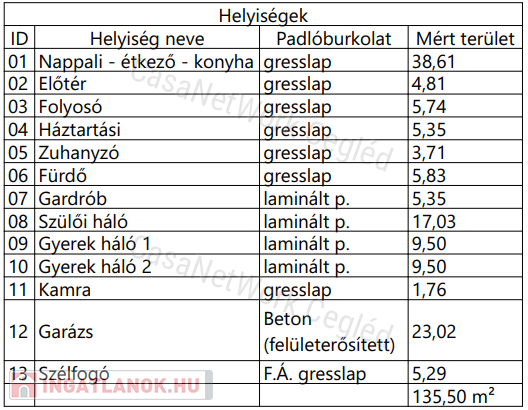 - Nettó : 135.5 m2