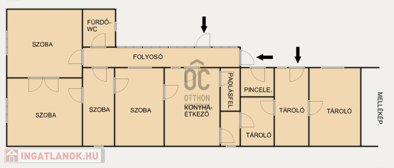 ✅ Födém: első rész betonfödémes, hátsó rész fa födémes