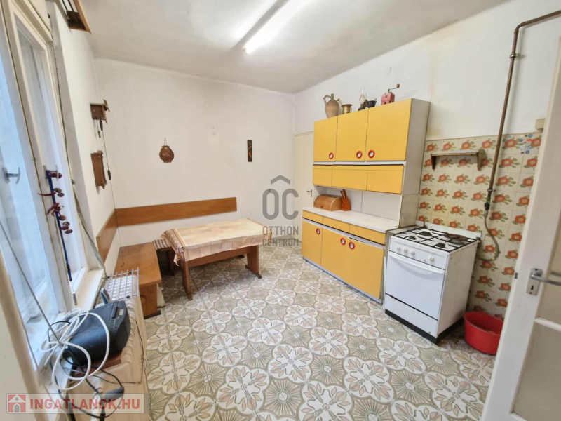 Kivételes lehetőség Tata szívében! Eladásra kínálunk egy 68 nm alapterületű családi házat, amelyhez pince, garázs, melléképületek, valamint egy beépíthető tetőtér is tartozik. Az ingatlan jelenlegi elrendezésében két szoba található, de könnyedén háromszobássá alakítható, így ideális választás lehet családok számára is.