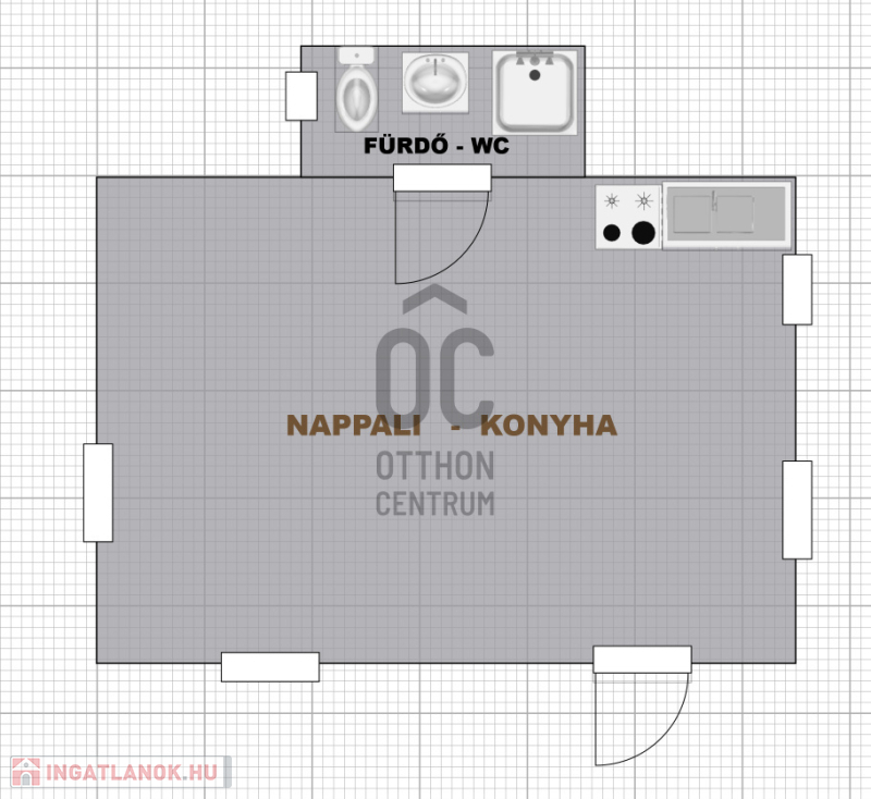 1.) egy tágas, amerikai konyhás helyiség (igény szerint megosztható külön szobára, konyhára és előszobára)