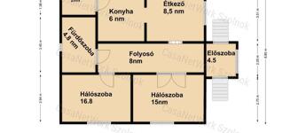 - rendelkezésre álló helyiségek: 2 szoba, konyha, étkező, fürdőszoba wc közös helyiségben, előtér, folyosó, kamra padlásfeljáróval,
