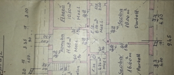 Az egyes lakrészek helyiségei: 1 lakrész, előtér/közlekedő, 2 szoba, konyha, fürdőszoba, kamra.