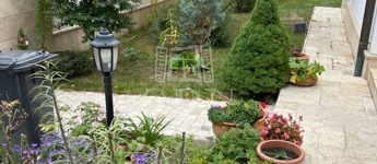 A gondosan megtervezett, ápolt kertet szép növényzet díszíti, a kerti szerszámok tárolására egy kis faház biztosít helyet.