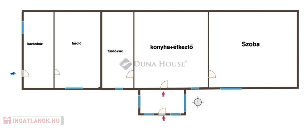Az ingatlan kialakítása.:-Nagy étkezős konyha -szoba-fürdőszoba-előtér