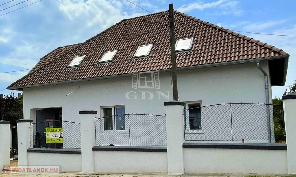 A 179 m2-es teljesen felújított, DK-i tájolású családi ház egy 396 m2-es telken helyezkedik el. A ház földszinti részén tágas, világos nappali-konyha-étkező, egy hálószoba, fürdőszoba, WC, és kis tároló helyiség található. A tetőtérben 4 szoba és egy fürdőszoba van.