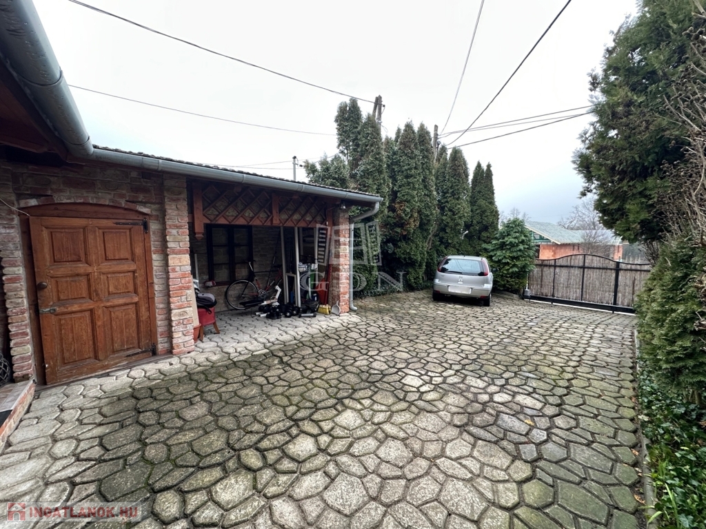 Autónkkal elektromos kapun keresztül állhatunk be a rendezett térkövezett, saját udvarra.