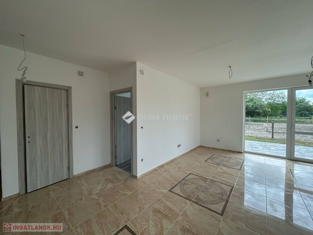 földszinten: szoba, tágas nappali+konyha, zuhanyzó+wc, gépészet, nyitott terasz.