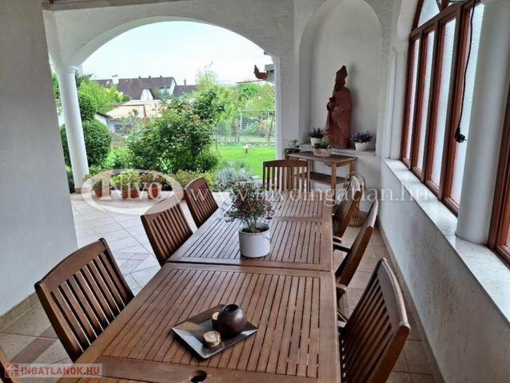 A földszinten található egy hangulatos, fedett nagy méretű terasz. Az emeleten lévő teraszról látható az Árpád-házi Szent Margit templom mögötte a Bakonyi látképpel.