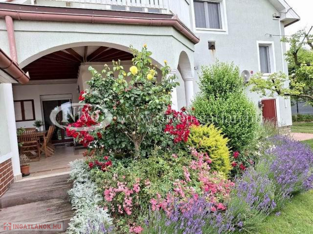 Az ingatlan 661 m2-es telken található, gondozott, parkosított, gyümölcsfákkal, kis veteményes kerttel, öntözőrendszerrel ellátott. Két elektromos kapubeállón közelíthető meg a két önálló garázs (24,4 m2 + 19,54 m2). Az egyik garázsba nyári konyha is helyet kapott, illetve még megtalálható épített grillező, rókatorkos füstölő és az épület egy része alatt boros pince is.